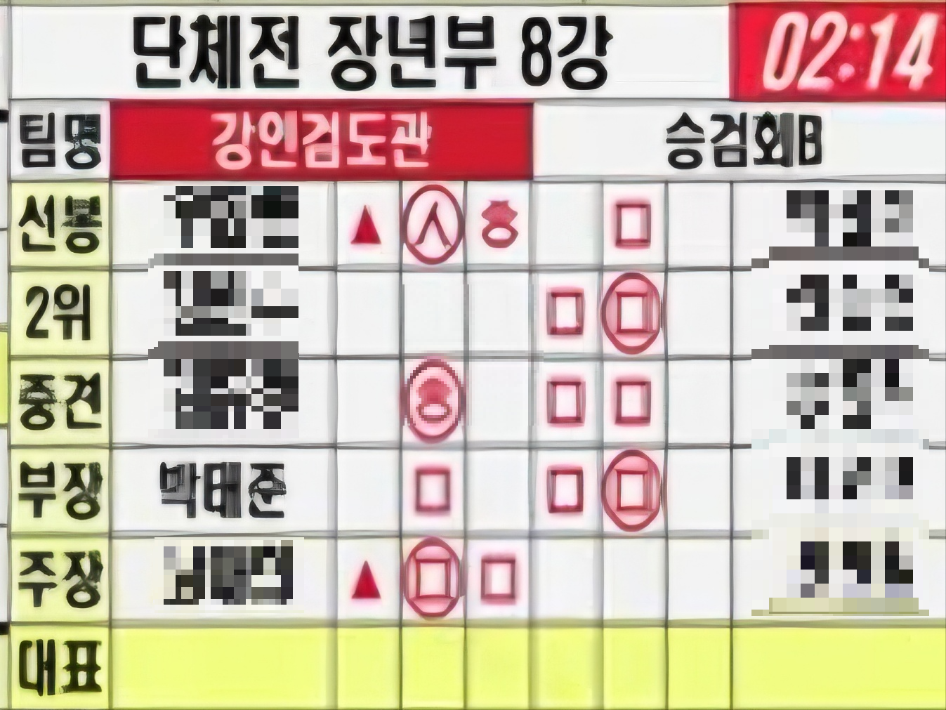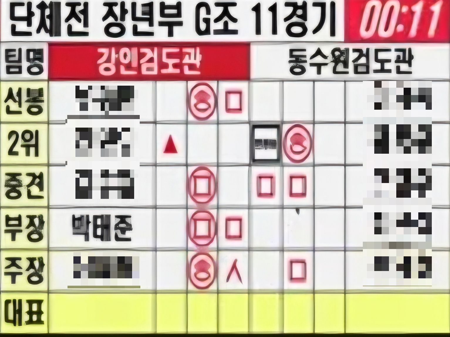 주장전에서 우리가 한판을 먼저 따냈지만 다시 상대방에서 한판을 내주면서 가슴 졸였지만 주장의 마지막 깔끔한 손목한판으로 조 결승 진출!