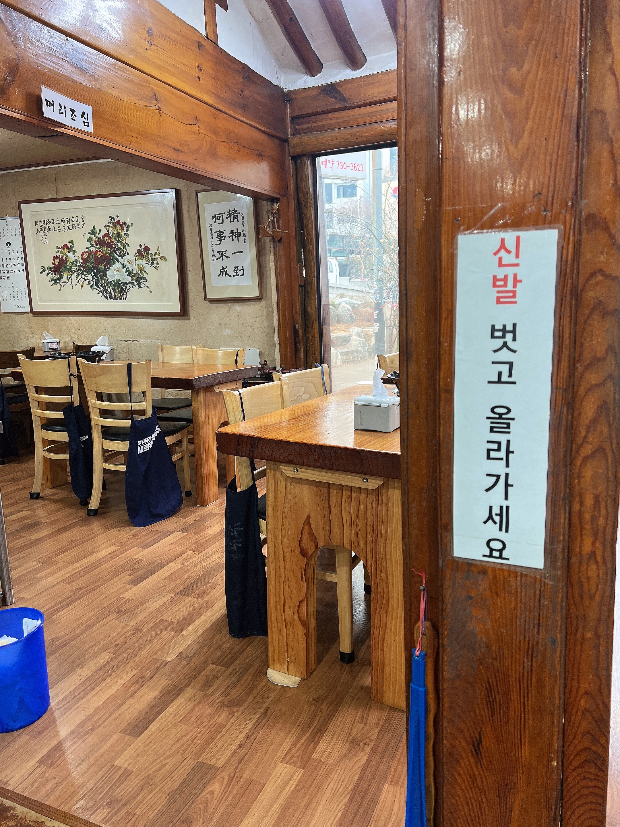 가게내부는 넓지 않다. 테이블은 모두 입식이고 신발을 벗고 올라가야 하는 자리도 있다.