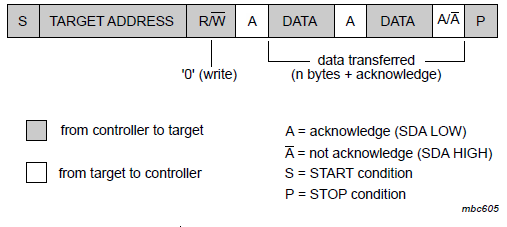 START condition이후에 2byte의 주소를 전송하고 Slave에 데이터를 써주면 된다.