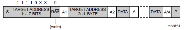 10bit address 에서 Write 동작은 아래 그림과 같다.