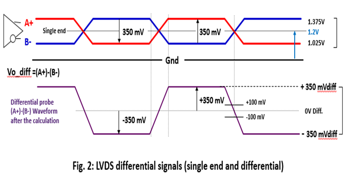 데이터 전송은 통상 1.2V를 기준으로 350mV의 전위차를 갖는 2개의 데이터로 전송선로를 통해 전송한다. 옴의 법칙에 의해 Receiver 종단 저항에 걸리는 전압은 대략 350mV고, 이 전압의 극성을 감지해 논리 레벨(High, Low)을 판단해 정보화한다.